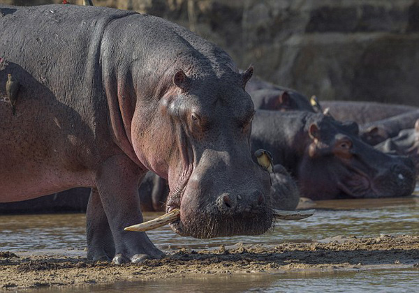 而近日在赞比亚北卢安瓜国家公园,摄影师发现了这样一只河马,它的下犬齿竟从口腔两侧直接长了出来,锋利尖锐,同伴们害怕伤到自己,就让它自己孤独的站在浅滩上,只有在背上觅食的几只牛椋鸟陪着它。后来,据相关专业人士称,这样的牙齿只是大自然中的特例,并没有影响到这只河马的正常成长。(环球网综合报道 实习编译:韩倩倩 审稿:李宗泽)