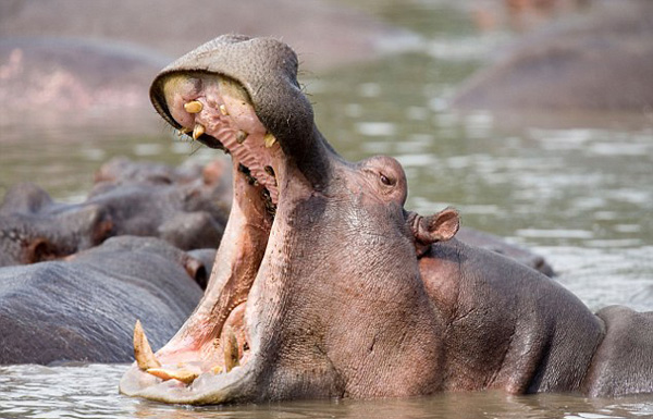 而近日在赞比亚北卢安瓜国家公园,摄影师发现了这样一只河马,它的下犬齿竟从口腔两侧直接长了出来,锋利尖锐,同伴们害怕伤到自己,就让它自己孤独的站在浅滩上,只有在背上觅食的几只牛椋鸟陪着它。后来,据相关专业人士称,这样的牙齿只是大自然中的特例,并没有影响到这只河马的正常成长。