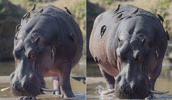 赞比亚罕见“龅牙”河马 同伴疏离怕受伤(组图)
