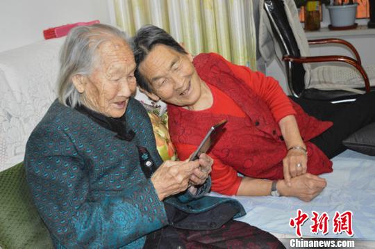 程欠老人在看女儿手机中的照片。 胥执诚 摄