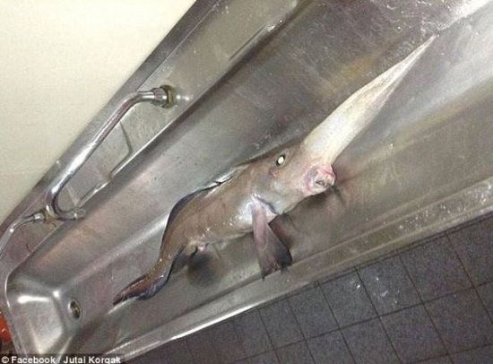 这种如幽灵般的深海鱼长有非常长的鼻子,令人害怕的嘴巴,以及凝胶状银灰色身体顶部的有毒的脊椎,这一长鼻银鲛目被发现于加拿大最北部的努勒维特省。怪鱼原属银鲛目,栖息于深海,是世界上最古老的物种之一。