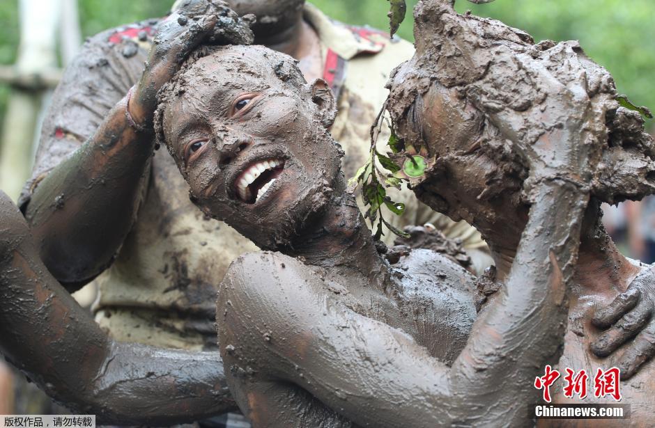 印尼巴厘岛男女老少共洗泥浴 求辟邪(高清组图)