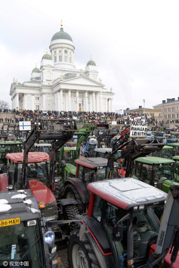 芬兰农民开拖拉机游行【高清组图】