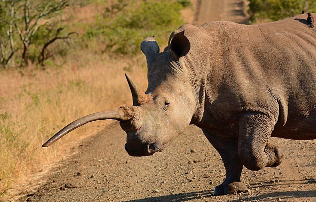 摄影师南非动物保护区拍到罕见畸形角白犀牛(图)