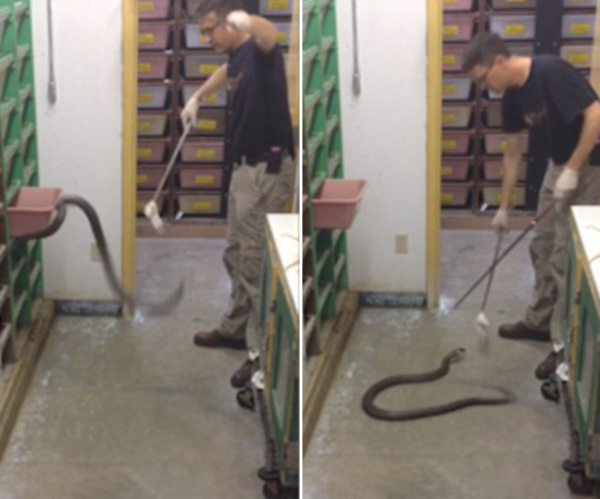 美毒蛇饲养员展示日常工作 画面惊心动魄(图)