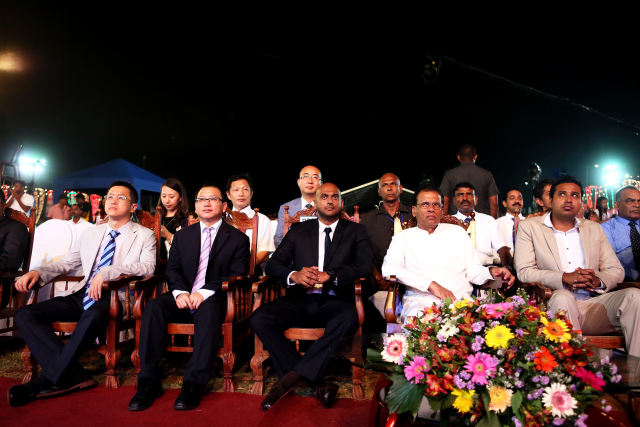 斯里兰卡总统西里塞纳出席港口城项目建设纪念碑落石奠基仪式。新华社记者 黄海敏 摄
