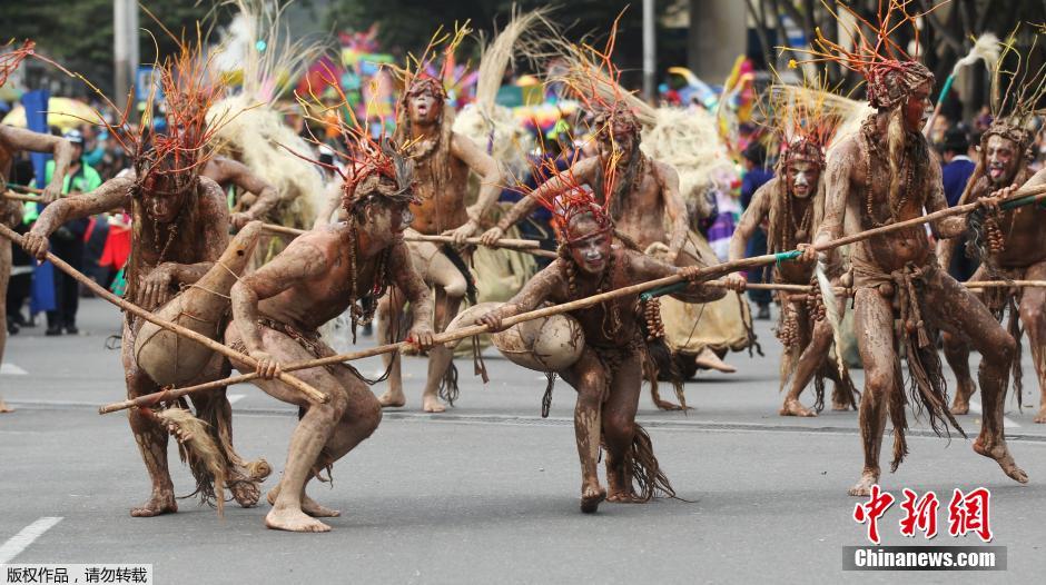 哥伦比亚举行戏剧节游行 奇葩造型亮相街头表演(高清组图)