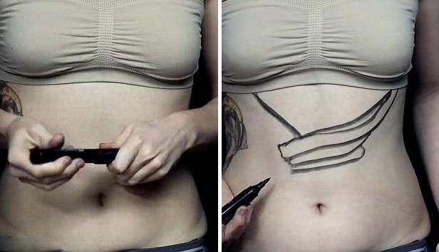 创意!美女艺术家肚皮上画“完美细腰”引人深思(组图)