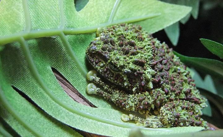 据英国《每日邮报》3月11日报道,近日,英国牛津郡科茨沃尔德野生动物园(Cotswold Wildlife Park)成功培育出了8只稀有的越南棱皮树蛙(Vietnamese Mossy Frogs),这也是该公园首次成功培育该品种蛙类。