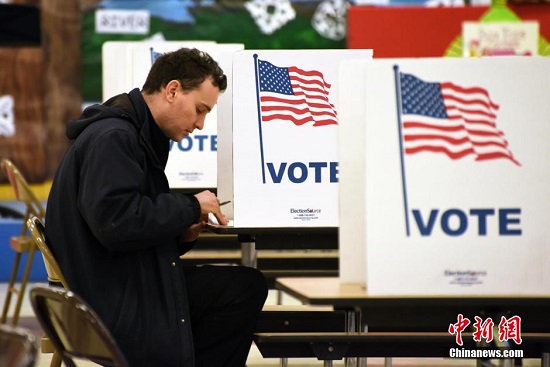 图为美国民众在“超级星期二”当天投票。