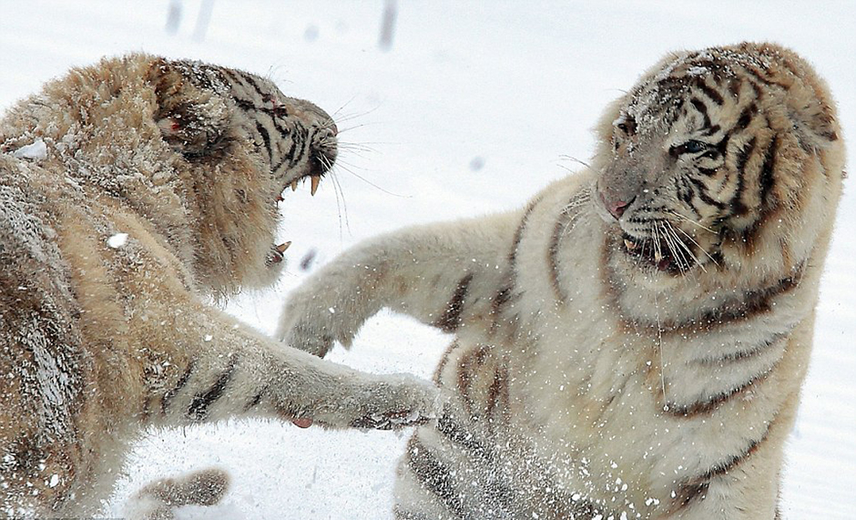 两珍稀白虎为争领地大打出手(图)