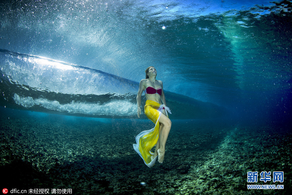 2016年3月16日报道(具体拍摄时间不详),法属塔希提岛,清澈的海水中,模特在其中翩翩起舞,灵动如童话中的美人鱼。摄影师Ben Thouard在塔希提岛远海拍摄了这组唯美的照片。