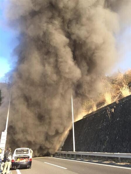 报道称,事故发生在山阳高速公路下行线八本松隧道内,当地位于山阳新干线东广岛站西北约10公里处。隧道出口浓烟滚滚。现场人员撤到隧道外,消防人员对伤者进行了救治。