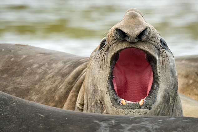 一群象海豹扯开嗓子拼唱功的图片真是滑稽极了!英国《每日邮报》3月16日发布了一组有趣的图片,记录了象海豹们头微微向后仰,张大嘴巴,试图模仿明星们的可爱画面。