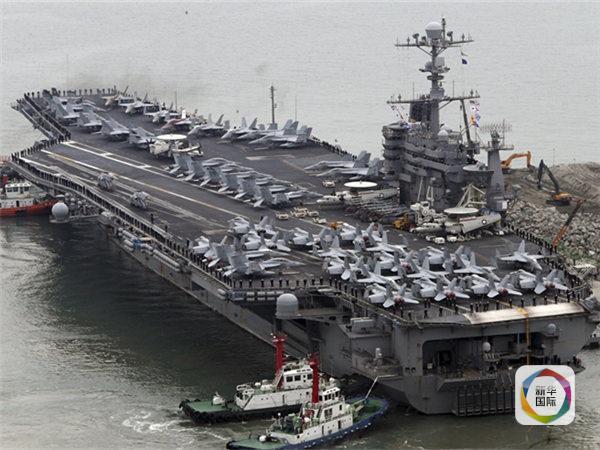 新华网北京3月17日电 美军本月出动大批尖端战斗力量参与韩美年度联合军演,规模堪称数十年之最。其中,13日驶抵韩国釜山作战基地的美国海军“约翰·斯滕尼斯”号核动力航空母舰尤为引人注意。