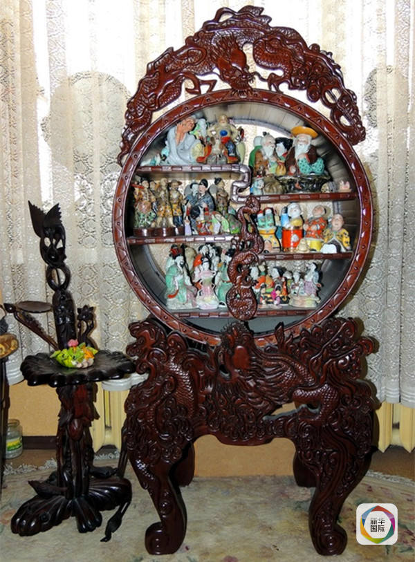 图为俄罗斯汉学家伊萨耶娃家中的多宝格。(新华社记者吉黎摄)