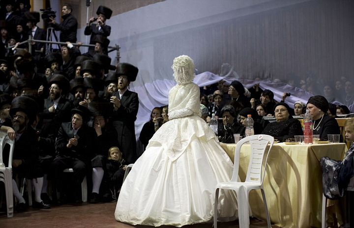 犹太传统婚礼上新娘全程蒙面 面纱缀满珠子(组图)