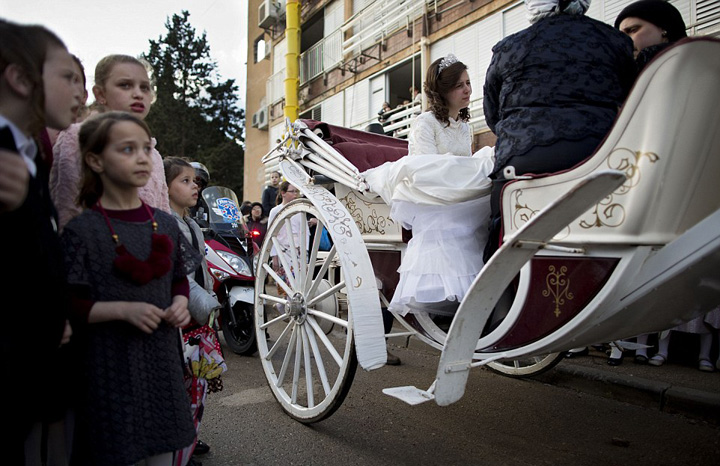 据英国《每日邮报》3月16日报道,日前,一场正统而盛大的犹太婚礼在以色列城市内坦亚举行。新郎是犹太教哈西德教派拉比(智者、教会精神领袖)的爱孙,而新娘则是哈西德教派宗教领袖的孙女。这场犹太教婚礼吸引了数千人围观,极度正统的婚礼细节和程序向人们展示了犹太教婚礼的与众不同。