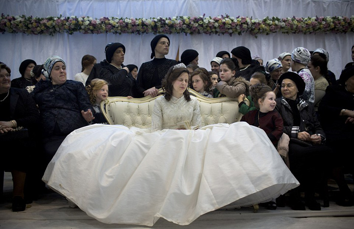 犹太传统婚礼上新娘全程蒙面 面纱缀满珠子(组图)