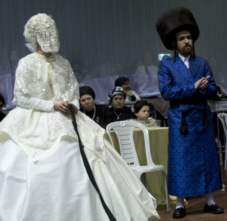 犹太传统婚礼上新娘全程蒙面 面纱缀满珠子(组图)