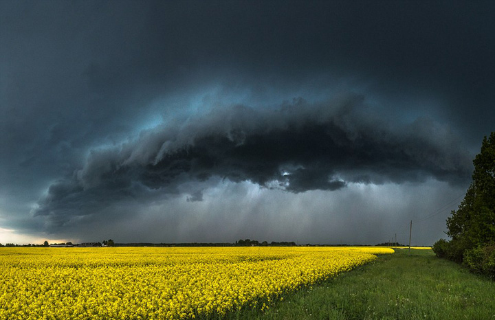 摄影师 Janis Palulis图中美丽静谧的油菜花田同暴烈的乌云形成了对比,展现出大自然的美。