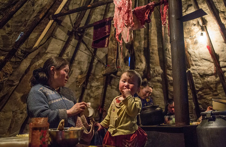 据英国《每日邮报》3月17日报道,俄罗斯摄影师德米特里 特卡丘克(Dmitry Tkachuk)跟随俄罗斯北部苔原游牧民族涅涅茨人迁徙,与他们生活数日,并用镜头记录了牧民的日常生活,揭开了这个古老民族的神秘面纱。