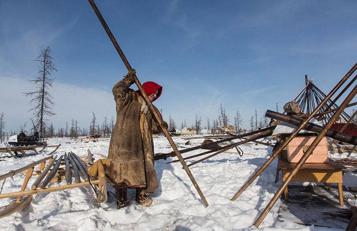 据英国《每日邮报》3月17日报道,俄罗斯摄影师德米特里 特卡丘克(Dmitry Tkachuk)跟随俄罗斯北部苔原游牧民族涅涅茨人迁徙,与他们生活数日,并用镜头记录了牧民的日常生活,揭开了这个古老民族的神秘面纱。