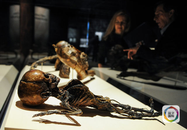 本次展览的布展人之一,美国威斯康星大学研究员詹姆斯·香农多尔着重介绍了一组家庭木乃伊。这组木乃伊是一个匈牙利姓奥尔洛维茨的一家三口,父母和年仅一岁的孩子都因患肺结核在19世纪初去世,他们的遗体葬在土中后被奇迹般保存了下来。