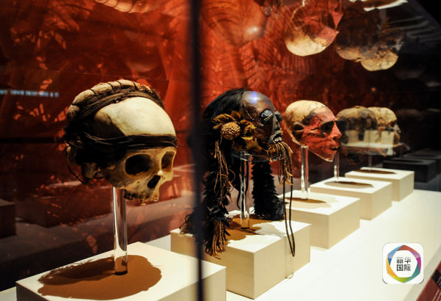 展出的人类头颅木乃伊。