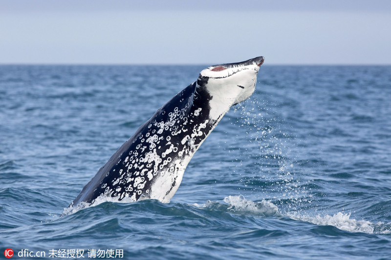 2016年3月19日报道,导游Fiona Wardle在新西兰东部海岸拍摄到一头罕见的座头鲸跃出海面的画面,该座头鲸没有尾巴,尾鳍严重受伤。现场的游客纷纷猜测是什么造成了这头座头鲸没有尾巴,就连野生动物专家们也很是困惑。东方IC