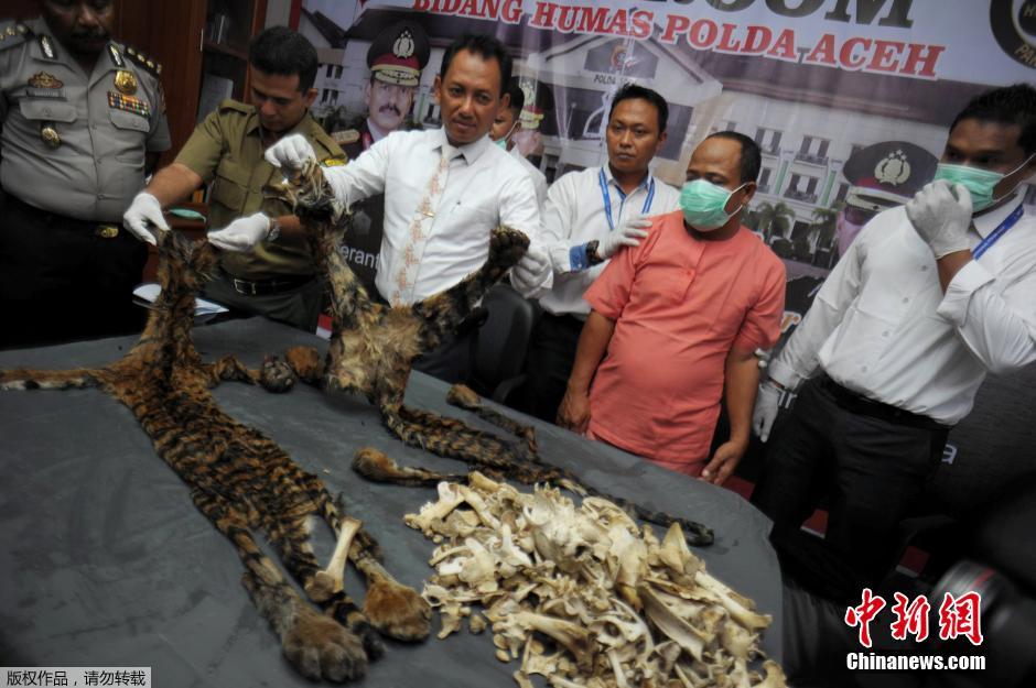 印尼警方缴获非法虎皮虎骨 价值约为一万美元