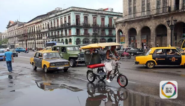 雨后,哈瓦那街头。老爷车多是几十年前生产的,经常坏在路上。(新华社记者刘卫兵摄)