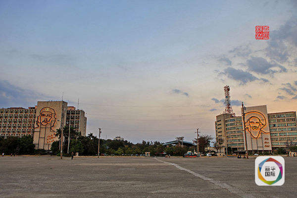 古巴内务部大楼上的切·格瓦拉与邮电部大楼上的西恩富戈斯