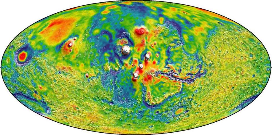 NASA发布迄今最详细火星重力图 似彩色油画