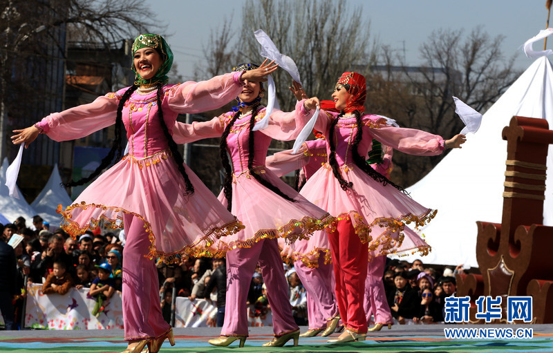 3月22日,哈萨克斯坦南部城市阿拉木图举行盛大歌舞表演活动,庆祝哈萨克人传统佳节纳乌鲁斯节。新华网发(米赫耶夫摄)