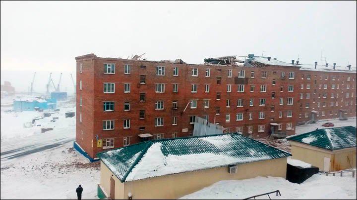 俄罗斯5层公寓楼屋顶被狂风整个掀翻 吓傻街邻(图)
