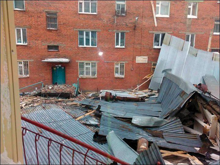 3月21日俄媒报道,在俄罗斯北极地区杜金卡市,一栋5层公寓楼的屋顶被狂风整个掀掉。所幸的是事件并没有造成人员伤亡,但巨大的屋顶被吹落的景象却把许多人吓坏了。屋顶被掀掉其实并不是大风直接吹的,当狂风发生时,屋顶上方空气流速大,下方(室内)空气流速小;因为流体流速大的地方压强小,所以会对屋顶有一个向上的压强差,屋顶会被掀翻。