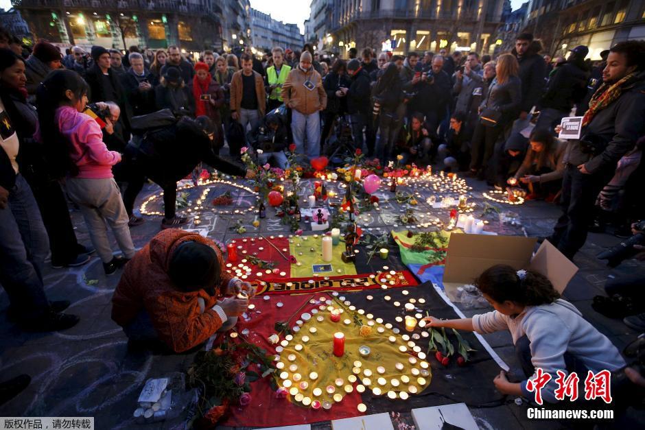比利时民众点燃蜡烛 悼念恐袭遇难者(图)