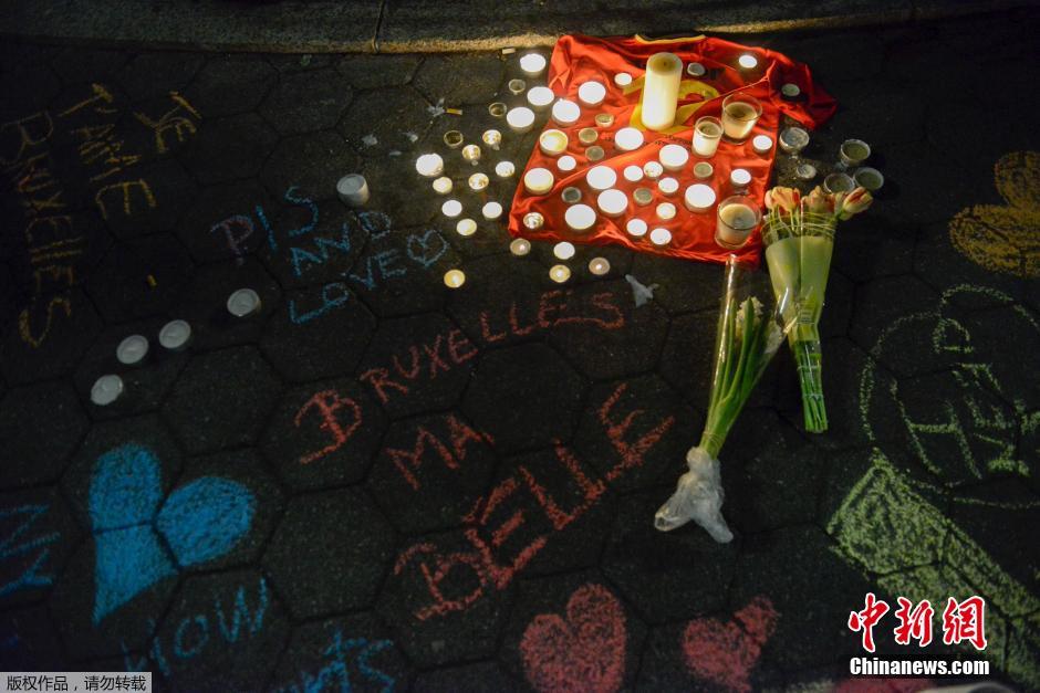 比利时民众点燃蜡烛 悼念恐袭遇难者(图)