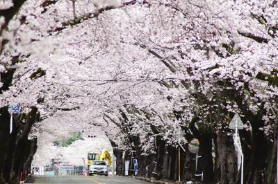 4月初,福岛县双叶郡富冈町的樱花即将迎来花期。这里的夜之森地区是日本东北知名的赏樱景点。樱花如期盛开,只是美景落寞。富冈町距离泄漏的福岛核电站仅数公里之遥,迄今仍属强制疏散区域。除了清理人员,富冈町几无人烟。2014年,应町长宫本皓一请求,日本政府对这条2.2公里长的樱花隧道的部分路段进行了去污,以便被疏散至各个避难所的全町居民可以临时返乡赏花。也确实有少量当地居民在花期专程赶来,隔着写有“禁止入内”字样的栅栏远远地观赏,借此或许能一抒思乡之愁。