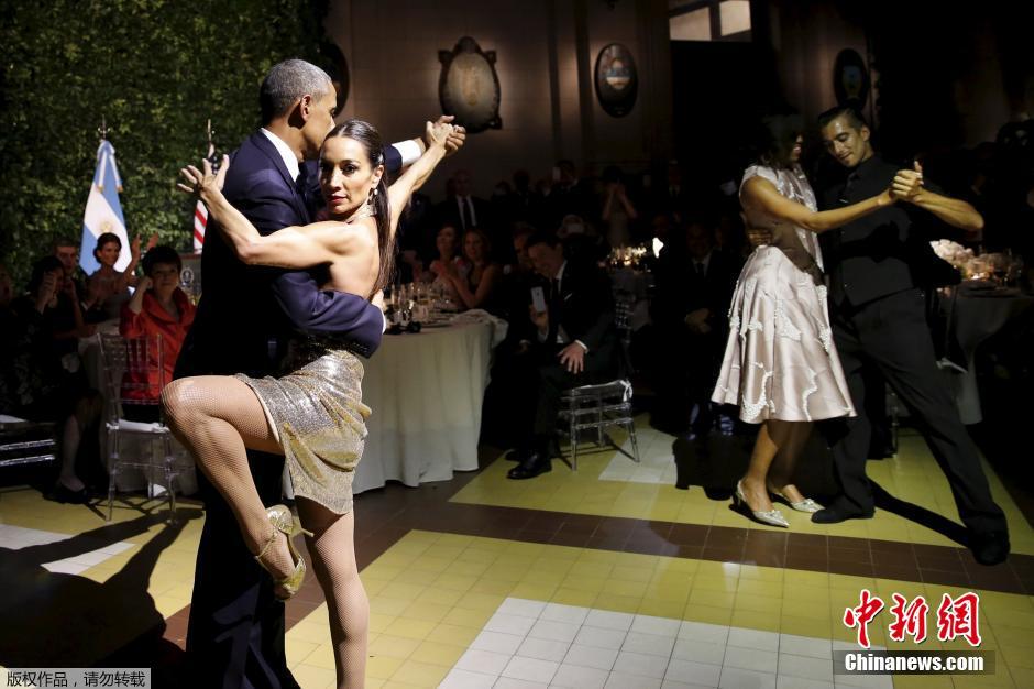 奥巴马出席阿根廷国宴 与女舞者跳探戈(图)