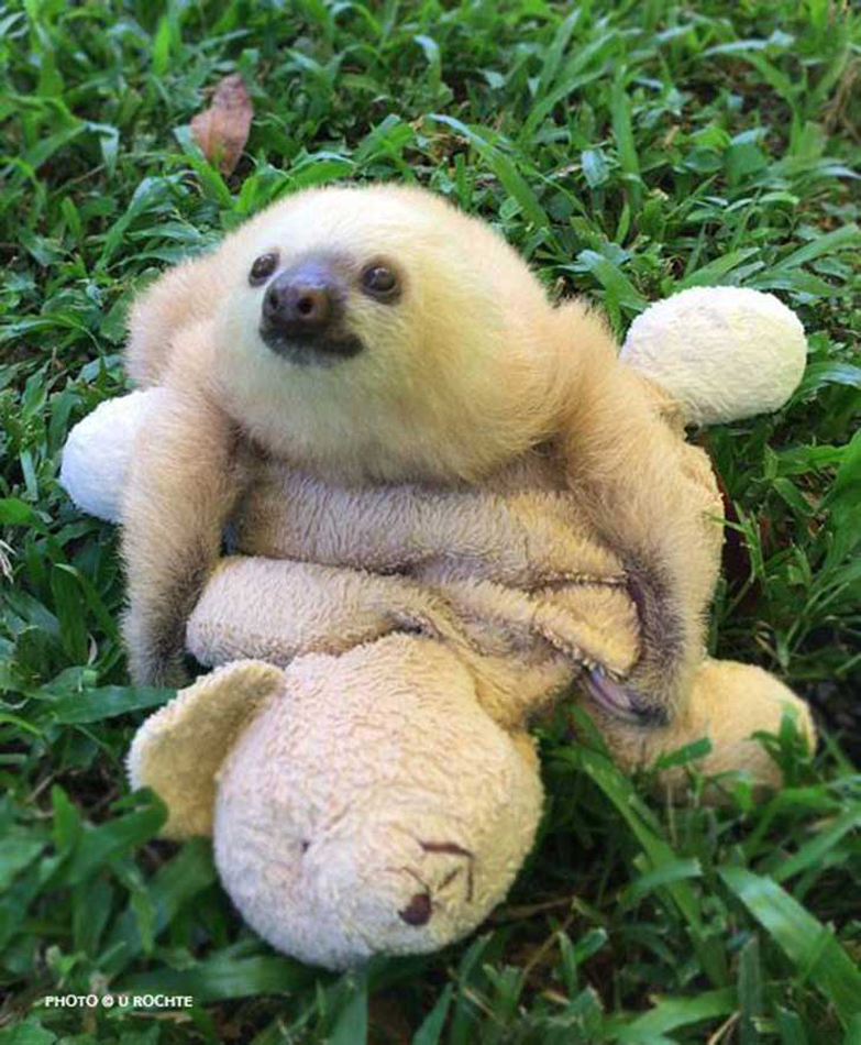 哥斯达黎加小树懒把玩具熊当“妈妈”(组图)