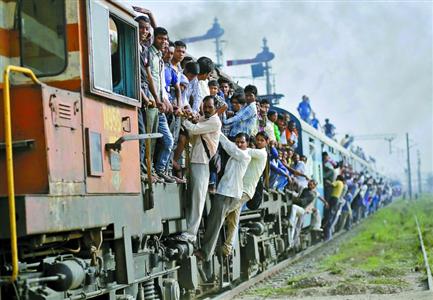 在印度洛尼,乘客搭乘一列超载的火车出行。 新华社/路透