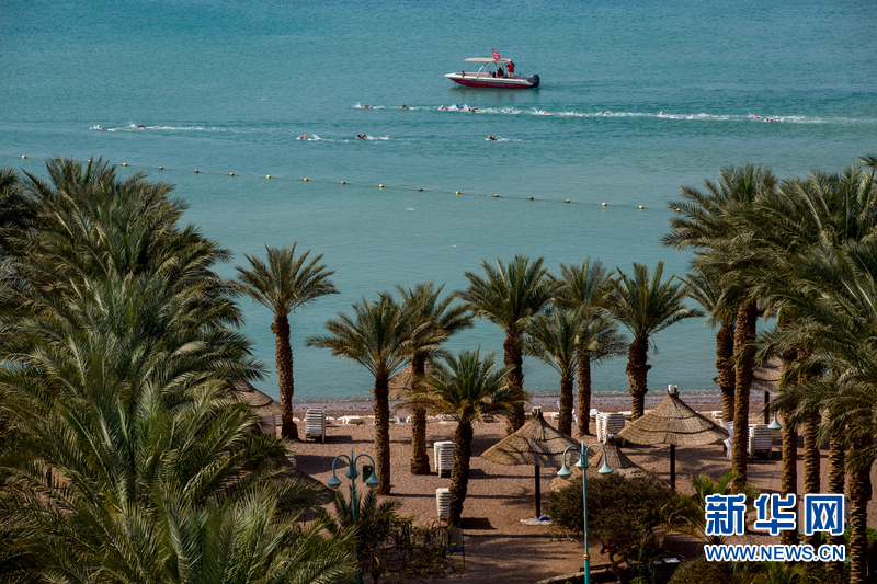 一支游泳队在埃拉特北部海湾进行游泳训练。濒临红海亚喀巴湾的埃拉特,是以色列最南端的城市。埃拉特人口约5万人,面积84平方公里,位于三国交界处,与埃及的塔巴和约旦的亚喀巴接壤,是以色列著名的红海度假胜地。这里终年阳光普照,冬春季节气候尤其温暖宜人,美丽的海滩、完善的旅游设施,吸引了众多游客和各类水上运动爱好者。新华网记者杨志望摄