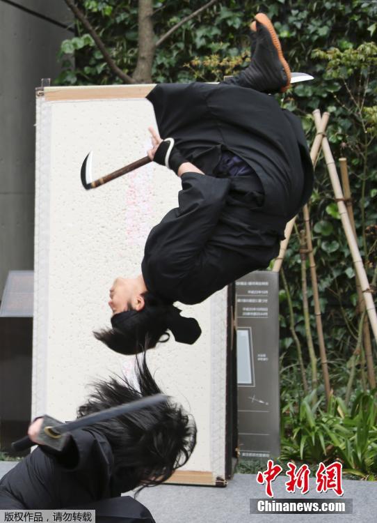 当地时间3月26日,日本伊贺忍者成员“阿修罗”在东京樱花季上表演功夫,以此吸引游客前往参观。