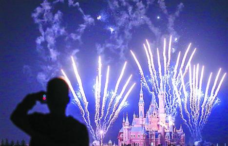 昨晚,上海迪士尼乐园进行了第一次烟花试放。 (CFP供图)