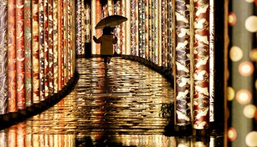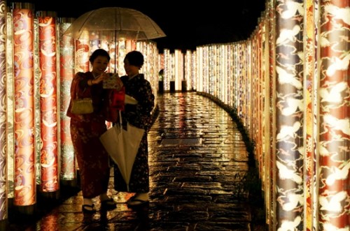 京都“光影竹林”:流光溢彩 雨夜更显唯美(图)