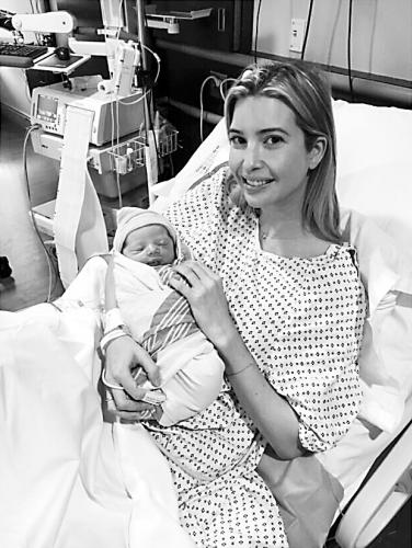 在美国共和党总统参选人特朗普的助选团队中,他的女儿——模特出身的伊万卡·特朗普算得上一道靓丽的风景。特朗普在竞选活动中,多次利用女儿制造话题。伊万卡日前顺利生下一名男婴(如图),为特朗普家族添新丁。美国《名利场》杂志调侃说:“这下特朗普又有‘让美国变伟大’的新理由了。”