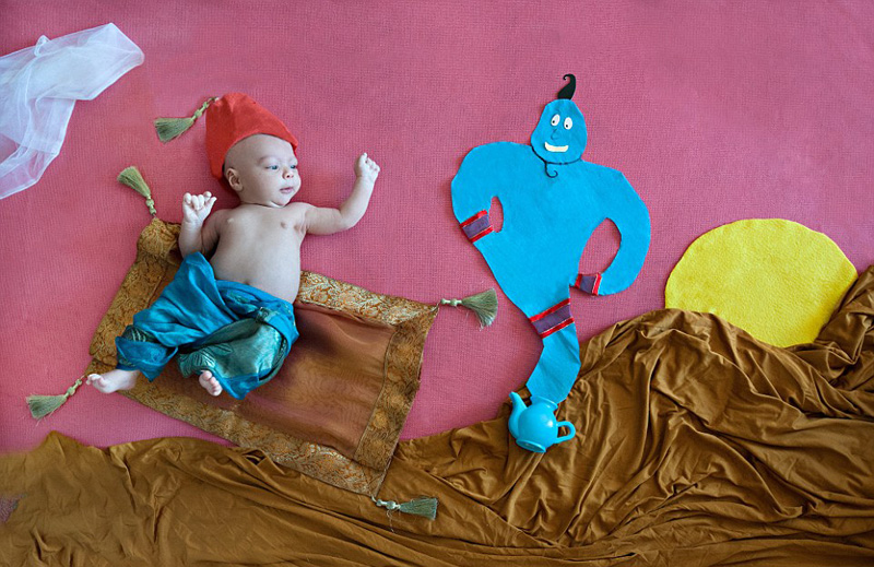 35岁的摄影师普拉霍瓦从14岁起就开始摄影。在自己做了母亲之后就将自己的事业从婚礼摄影转向了婴儿摄影。她决定打破常规,给客户拍摄有纪念意义,有创意的照片。她的灵感来源于阿拉伯民间传说和阿拉丁和辛巴达的漫画形象。2014年,她给婴儿拍摄了一组超级英雄和一组20世纪20年代风格的照片。这次她想换个主题,满足阿拉伯客户的需要。