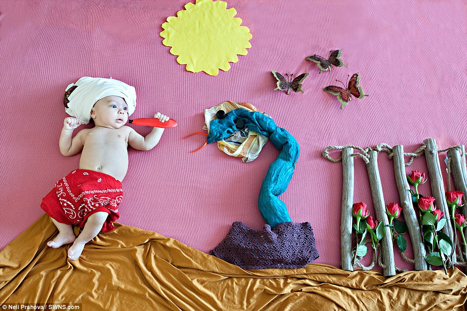 摄影师为婴儿拍阿拉伯神话主题照片(图)